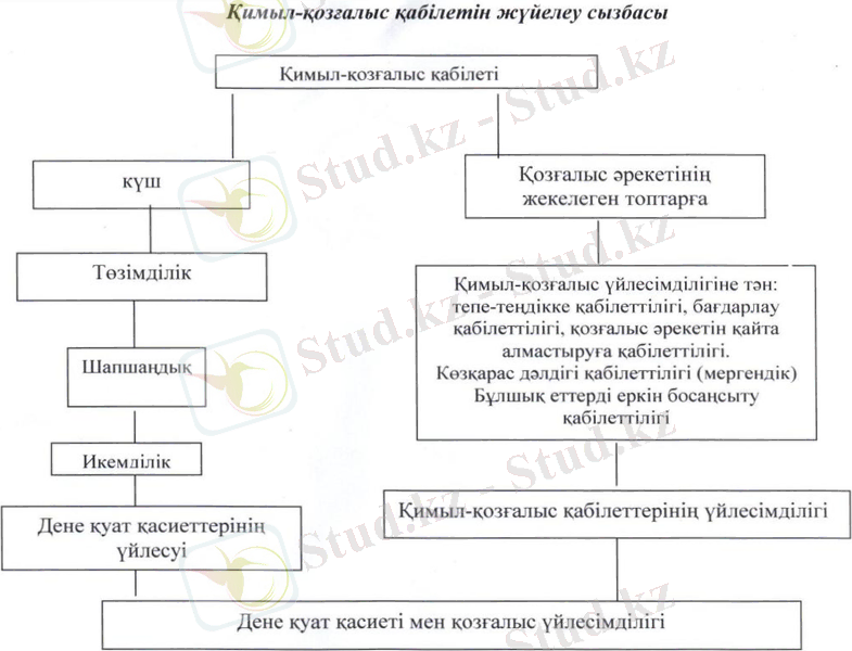 1. Қимыл - қозғалыс қаблеті дегеніміз - бұл адамның қозғалыс мүмкіндігі деңгейін анықтайтын жекелеген ерекшеліктері. Оған мыналар жатады: