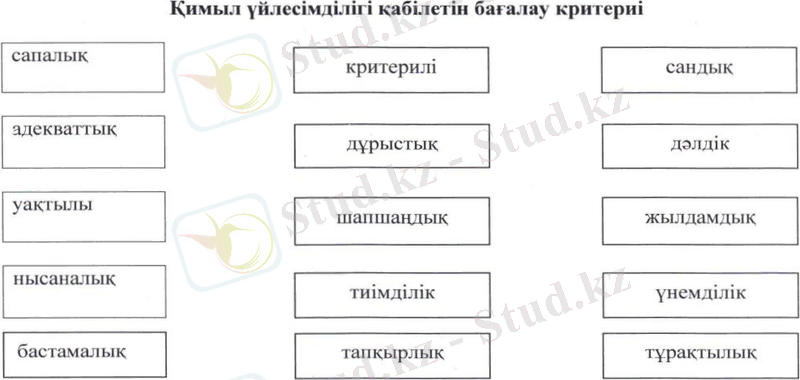 Бақылау сапасын қимыл үйлесімділігі қабілетін бағалау критериіне арқа сүйей отырып арттыруға болады: дұрыстыкка, шапшаңдыкка. сапалық және сандық сипаты бар тиімділік пен тапқырлық. Оқушы үйлестіруге киын қозғалыс әрекеттерін баскару және реттеу барысында бір ғана критерий бойынша өзінің қозғалыс әрекетін үйлестіре алады. мысалы,