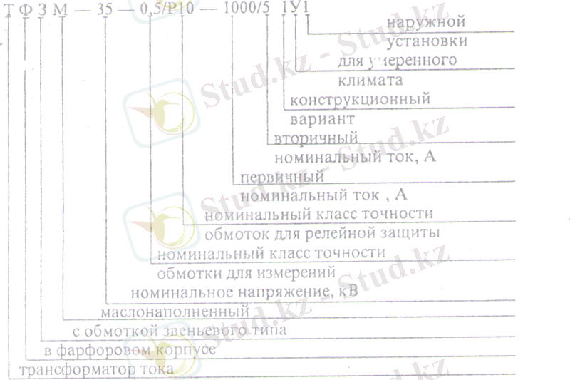 Ток трансформаторының әрбір типіне әріпті-цифрлы шартты белгі берілген:
