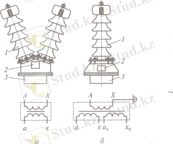 5-сурет. Бір фазалық майлй кернеудiң трансформаторлары: а- НОМ -35 типті; б-ЗНОМ-35 типті;