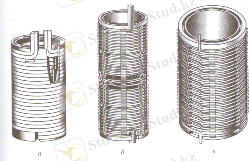 10-сурет. Концентралдық орамдардың конструкциясы: а - цилиндрлік; б - бұранды; в - үздіксіз