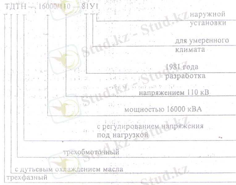 Трансформатор түрлерiнiң белгiленуі және олардың мағынасы.
