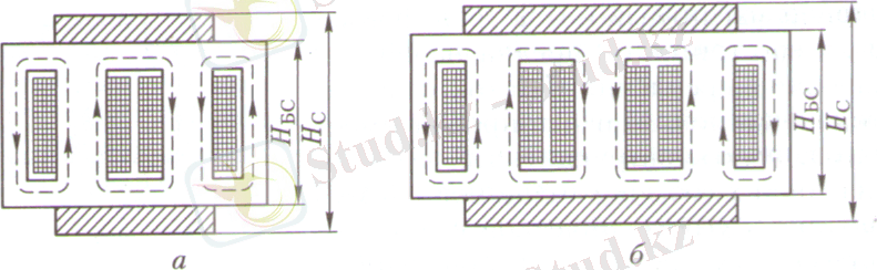 5-сурет. Брон стержнді трансформаторлардың магнитөткізгіштері: а - бір фазалық; б - үш фазалық.