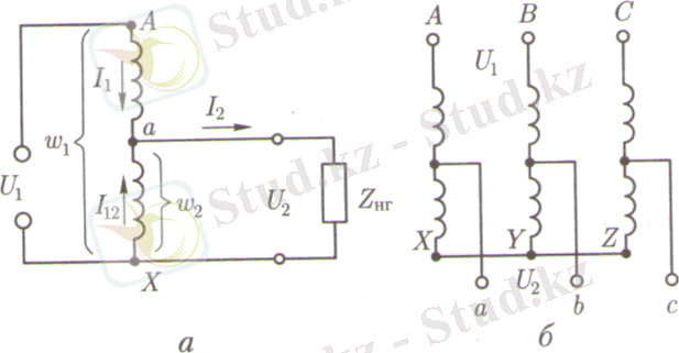 Екі орамды трансформаторға қарағанда, автотрансформатор бір орамнан тұрады және орамдарының бір бөлігі бір уақытта бірінші және екінші реттік тізбектерге жатады. 23, а-суретте төмендеткіш автотрансформатордың принципиалды сұлбасы көрсетілген, мұнда аХ - жалпы орам учаскісі арқылы I 12 ток өтеді .