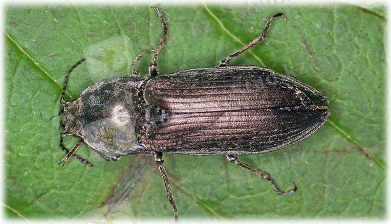 Денесі жалпақтау келген, ұзындығы 9-13 мм, мұртшалары қысқа, көк-жасыл реңді қара қоңыз. Дернәсілдерінің де денесі жалпақ, ұзындығы 22 мм дейін, қоңырқай сары түсті, құрсағының 10 - бунағының ұшында тереңдеу шұңқыр болады.