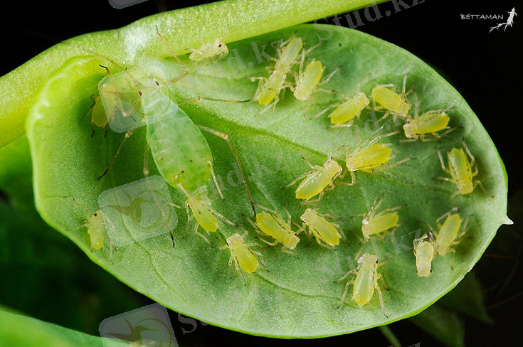 Бұршақ бітесі- Acyrthosiphon pisi Kalt. (Homoptera отряды , Aphidinea отряд тармағы , Aphididae тұқымдасы ) . Бітеңің денесі біршама жуандау, денесінің ұзыныдығы 4, 5-5мм. Қанатсыз аналықтарының денесінің түсі жасыл, кейде қоңыр-қызыл болып келеді. Ұрықтанған жұмыртқа көпжылдық бұршақ өсімдігінің сабақтарының тамыр бөлігінде және жерге түскен бұршақта қыстайды. Біте осы жұмыртқадан дернәсілдік сатыдан өткеннен кейін аналық негізге айналады. Партеногенетикалық жолмен көбейіп, колониялар түзеді. Мұнан ары қарай аналық-орналастырушылар пайда болады. Қанатты аналық-орналастырушылар бір жылдық бұршақ дақылдарына қонып, сол жерде жаңа колониялар құрады. ( 2-сурет)
