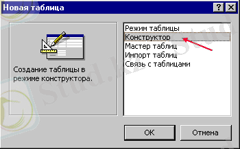 “Жаңа кесте” терезесінде жаңа кестенің құрылымын құру режимі - Конструкторды таңдаңыз.