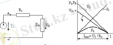 Активті екіұштыққа қосылған жүктемеде R ж бөлінетін қуат P = I 2 R = U аб бж R ж /( R ж + R i ) . Қабылдағышқа максимал қуат беру шартын анықтау үшін P-ның R ж бойынша бірінші ретті туындысын тауып, оны нөлге теңейміз. Осыдан R ж = R i . Демек осы теңдік орындалған жағдайда жүктемеде максимал қуат бөлінеді: P max = U 2 аб бж /4R і . Балама генераторда бөлінетін толық қуат P тол =U аб бж I =U 2 аб бж /( R ж + R i ) . Пайдалы әсер коэффициенті ( п. ә. к. ) : η= P/ P тол = R ж /( R ж + R i ) . Егер R ж = R i болса, онда η=0, 5.