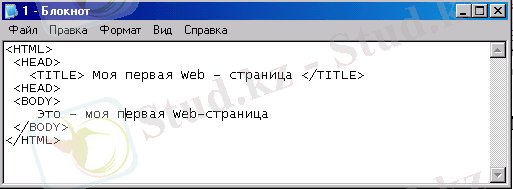 HTML тіліндегі құжат - құжаттың негізгі мәтінінен және тегтерден тұрады. Бұл файлды құру үшін қарапайым мәтіндік редактор Блокнотты қолдансақ та болады.