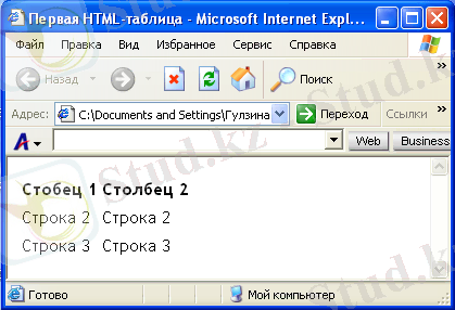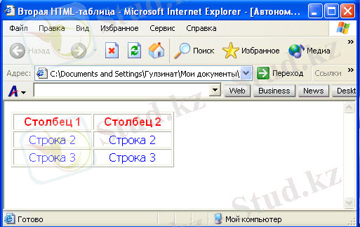 8-сурет. Үш қатар және екі бағаннан тұратын HTML кестесі.