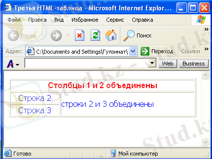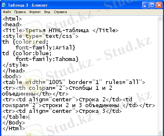 10-сурет. Rowspan және Colspan атрибуттарын