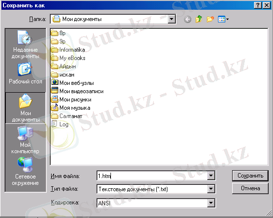 3) құрылған құжатты сақтаңыз (файл аты көрсетілетін қатарда 1. htm деп жазамыз) (2-сурет) ;