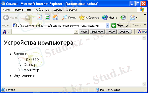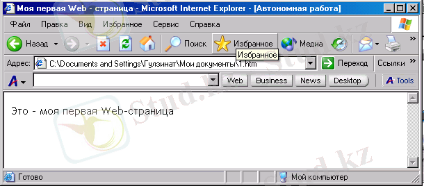3-сурет. Internet Explorer броузерінің көмегімен ашылған Web-құжат .
