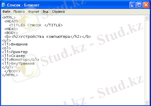 17) <LI>, </LI> - тізім элементі. Бұл дескриптор <ol> және <ul> дескрипторларының аралығында жүреді;