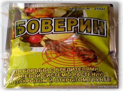 Боверин - ақ немесе қоңыр түсті, Beauveria bassiana саңырауқұлағының конидиялық спораларынан тұратын ұнтақ. Препарат Украина өсімдік қорғау ғылыми-зерттеу институтында профессор Н. А. Теленганың басқаруымен жасалған. Ұнтақтың бір грамында саңырауқұлақтың 2 млр. споралары бар. Боверин бунақденелерді ауаның ылғалдылығы мол, әрі физиологиялық әлсіреген уақытта залалдайды. Препарат дернәсілдердің үстіне түскеннен кейін өсіп, терісінен өтіп гемолимфаға өтеді. Саңырауқұлақтың бунақденелердің денесіне енуінің екінші жолы - қоректену кезінде жапырақпен бірге ас қорыту мүшелеріне түсіп, споралары өсіп, жіпшелері ағзаға түседі. Олардың өсіп дамуы арқасында бунақденелер өліп қалады.