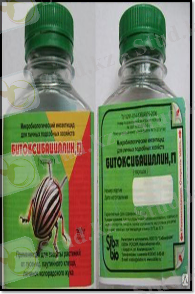 Битоксибациллин препараты - бұрынғы бүкілодақтық микробиология ғылыми-зерттеу институты жанында Bacillus thuringiensis var. Thuriengiensis бактериясы спорасынан жасалған. Битоксибациллин құрғақ ұнтақ түрінде шығарылады. Оның құрылымында 0, 6-0, 8% экзотоксин, 45; ал соңғы жылдары - 60 млр. спора және соншалық экзотоксин болады. Дайындалған ұнтақ 1 жыл ғана сақталады, табиғатқа жылы қанды жануарларға қауіпсіз.