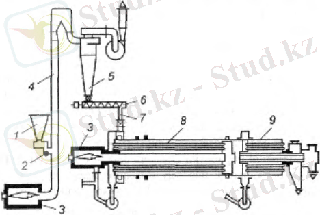 5-циклон; 6-шнекті қоректендіргіш; 7-ағыс, 8-кальцинатор; 9-суытқыш;