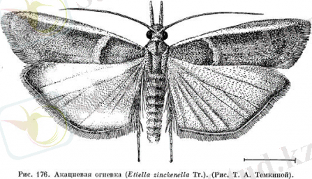 Бұршақ немесе акция көбелегі - Etiella zinckenelle Tr. (Lepidoptera - қабыршақ қанаттылар отряды, Phicitidae - қара күйе тұқымдасы) . Құрттың денесінің ұзындығы - 15-20 мм басы сары қоңыр, ал тұлғасының түсі қоңыр жасыл, қоңырлау немесе ақшыл қызыл болып келеді. Құт пілләнің ішінде топырақта қыстайды. Көбелектер ымырт түскен кезде және түнде ұшады. Жұмыртқаларын пісіп жетілмеген бұршаққа, гүлдің қалдықтарына салады. Құрттар жұмыртқадан шыққаннан кейін бұршақтың қабығының астында, содан соң тұқымымен қоректенеді. Құрттардың қуыршаққа айналуы топырақта өтеді. 2-3 ұрпақ бріп дамиды. Бірінші ұрпақ акцияда, бұршақта, сиыр жоңышқада, чинада дамиды. Екінші және үшінші ұрпағы сояға люпинге, жазғы мезгілде себілген бұршаққа қауіпті болып табылады.