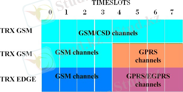 EDGE технологиясын абонентке EGPRS, ECSD, (HS) CSD, GPRS және дауыстық байланыс GSM (толықжылдамдықты FR, жартыжылдамдықты HR, және AMR адаптивті көпжылдамдықты режимі) сияқты қызметтермен қолдануды қамтамасыз етеді. Берілген технология бір уақыттық интевалдағы (слоттағы) әртүрлі модуляция әдістерімен қызметтерді тығыздау мүмкіндігін береді. GSM стандартындағы қызмет істеп жатқан базалық станцияларға EDGE технологиясын енгізу үшін, минимум, тасымалдаушы блогын EDGE (ECU) деп аталатын тасымалдаушы блогына ауыстырамыз. ECU блогын қосу EDGE (EGPRS, ECSD) және EDGE-емес (мысалы, GSM дауыс байланысы, AMR адаптивті көпжылдамдықты таралу режимі, HSCSD, GPRS дестелі мәліметтерді тарату) сол бір тасымалдаушыда уақыттық интервалдарын біріктіріп (2. 5 сурет) әтүрлі комбинацияларын қолдануға болады. EDGE және EDGE-емес интервалдары, яғни EGPRS және GPRS дестелі мәліметтер ағыны сол бір берілген тасымалдаушыдағы уақыттық интервалында топталуы