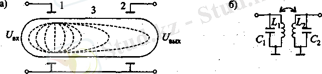 Кіріс сигналын U вх (t) 1-ші жұпқа беру кезінде тікелей пъезоэффекттің әрекетінен төсем серпімді деформация арқасында көлемді акустикалық толқындар пайда болады. Бұл толқындар фильтрдің төсемі таралады және 2-ші жұп пластинаның шығысына жетеді, кері пъезоэффект нәтижесінде бұл жұптың қабырғаларында айнымалы кернеу U вых (t) . Пайда болады. Мұндай пластина жұптары электрлік контурмен байланысқан жұптарымен эквивалентті ізбасарлы жалғанған бірнеше жұп байланысқан контурлармен эквивалентті көпконтурлы жүйе жиі қолданылады. (сурет 1. 13) .