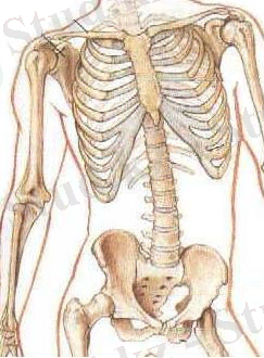 1 - башпай сүйектері; 2 - табан сүйектері; 3 - тілерсек сүйектері; 4 - балтыр сүйектері; 5 - тізетобығы; 6 - ортан жілік; 7 - башпай сүйектері; 8 - алақан сүйектері; 9 - білезік сүйектері; 10 - жасбас сүйектері; 11 - білек сүйектері; 12 - омыртқалар; 13 - кеуде сүйектері; 14 - тоқпан жілік; 15 - жауырын; 16 - бұғана; 17 - төс; 18 - бас сүйектері; 19 - иық белдеу сүйектері; 20 - кеуде; 21 - қол қаңқа сүйектері; 22 - мықын белеу сүйектері; 23 - аяқ қаңқа сүйектері;