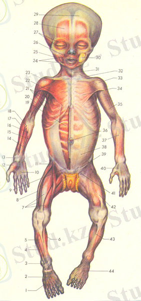 Нәресте денесінің бұлшықеттері. Алдынан көрінісі.