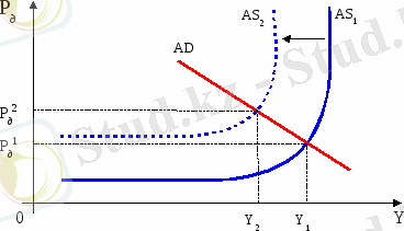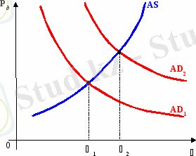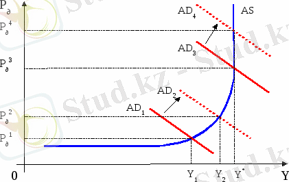 Бұл жағдай сызбалық түрде 4-суретте бейнеленген. Ұлттық өндіріс өзінің әлуетіне жақындаған кезде жиынтық сұраныстың артуы өндіріс көлемінің өсуіне ықпал етумен қатар, баға деңгейінің де көтерілуіне алып келеді. Ал, экономикалық әлуетке қол жеткен кезде жиынтық сұраныстың артуы өндіріс көлеміне ықпал ете алмағанымен, баға деңгейінің көтерілуін болдырады.
