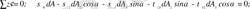 Бұл тепе-теңдіктерде призманың әрбір қырына әсер ететін күштер тиісті кернеулердің призма қырларының аудандарына көбейтіндісі түрінде алынған. (2) өрнектерді және тригонометрияның