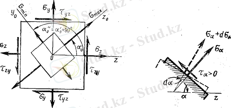 Көлбеу беттегі кернеулерді үшбұрышты призманың тепе-теңдік теңдеулерінен табамыз. Үшбұрышты призманың тепе-теңдігін қарастырамыз (5а-сурет) .