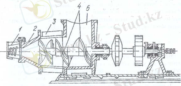 1-мүштік; 2-престің басы; 3- престің қабы; 4- шнектің қалақтары (таспалары) ; 5-балшық қабылдағыш (воронка) .
