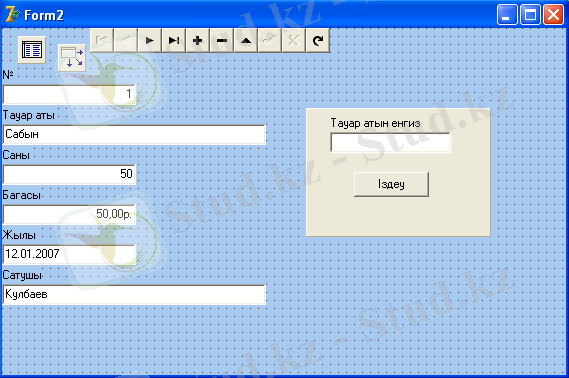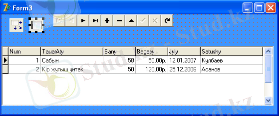 Жаңа жоба ашып формаға BDE кітапханасынан Table компанентін орналастырамыз. Сонымен қатар Data Access бетіне мәліметтер көзі болатын DataSourse компанентін орналастырайық. Бұл компаненттер жобаны орындау барысында көрінбей тұрады, сондықтан форманың кез келген жеріне орналастыруға болады. Кестедегі мәліметтерді көру үшін DBGrid компанентін Data Control бетінен алып, формаға қою керек. /2/