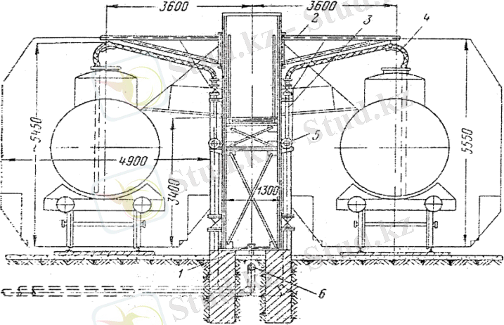2. 1 - сурет. Түсті мұнай өніміне арналған екі жақты құю эстакадасы.