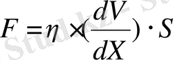 Сұйық қабаттары күшпен әсерлесетіндігін айттық. Мысалы. үшінші қабат екінші қабаттың жылдамдығын арттыруға қатысады да, ал өзі осы қабат тарапынан кедергіге ұшырайды, сонымен бірге төртінші қабат тарапынан жылдамдық алады, т. с. с. Қабаттар арасындағы F ұйкелес күшінің шамасы әсерлесуші қабаттардың S ауданына, (dv/dx) - жылдамдықтың градиентіне тура пропоционал болады:
