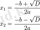 Д>0 болғандықтан, екі әр түрлі түбір болады: х