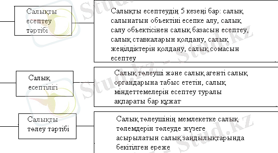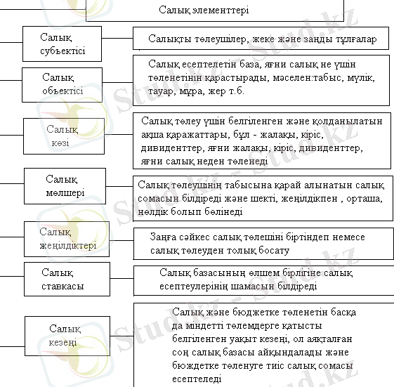 Салық салу элементтеріне келетін болсақ олар мыналар болып табылады: