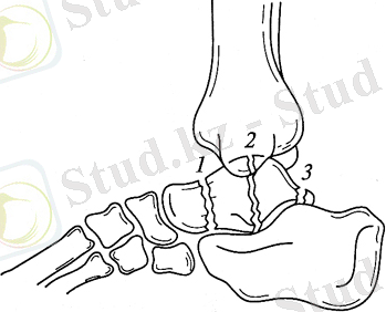 Мойнының, денесінің және топай сүйегінің артқы өсіндісінің сынығын ажыратады(3-сурет)
