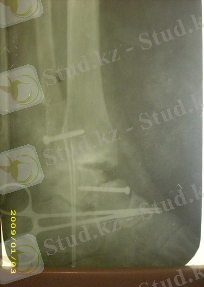 4-сурет: Топай сүйегі мойнының ығысқан сынығы, винт арқылы остеосинтез кезіндегі рентгенограмма