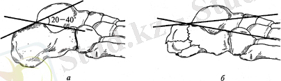 6-сурет: Топай-өкше бұрышы қалыпты жағдайда(а) және өкше сүйегі сынығы ығысумен(б)