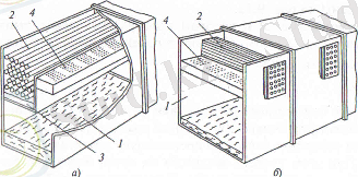 а) бойлық орналасқан конденсатормен; б) көлденең орналасқан конденсатормен; 1-буландыру камерасы; 2-конденсатор құбырлары; 3-дистиллят жинағы; 4-сепаратор.