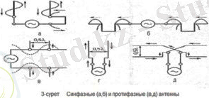 Егер көрші екі сым бір-бірін қаптаса және фазамен сай келсе, алаң бірін-бірі күшейтеді. Ол үшін толқын жарты ұзындығына фазаны ығыстыру керек, мысалы, бөлінбейтін шлейф есебінен. (3 а-сурет) . Аса көп таратылған синфазалы антенаның принципі осыған негізделген. (3 б-сурет) .