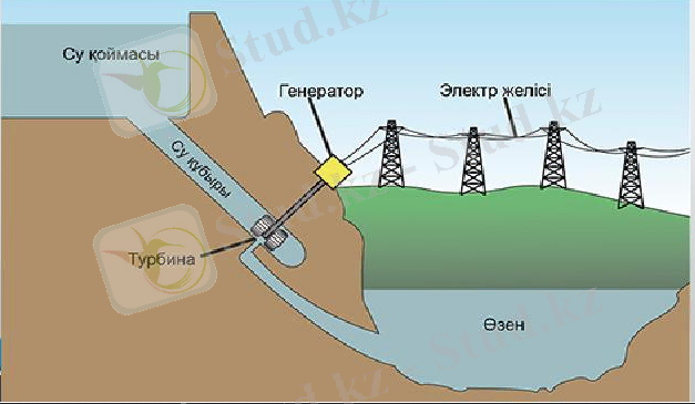 Су электр станциясының қарапайым принциптік сұлбасы 5-суретте көрсетілген. Жұмыс істеу принципі судың құлау механикалық энергиясына негізделген.