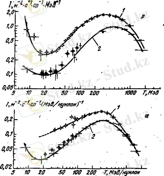2 сурет. 1965 ж. Жер бетіне жақын протондардың дифференциалдық спектрі (Замов, 1975)