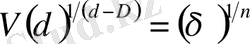 мұндағы V j ( δ ) - көпөлшемді фракталдық шама, D n - оның фракталдық өлшемділігі. Егер фракталдық шамалар топологиялық өлшемділіктері d i , i = 1, 2, 3 болатын сызықтың жазықтықтың, көлемнің деформациясынан пайда болатынын ескерсек, онда жалпы түрде
