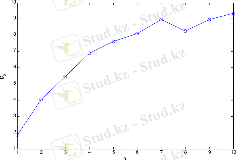 1. Берілген уақыт тізбегінен n фазалық кеңістіктің өлешемдерінің өспелі мәндерін бірізді қарастыра келе, (2. 13) корреляциялық функция тұрғызу