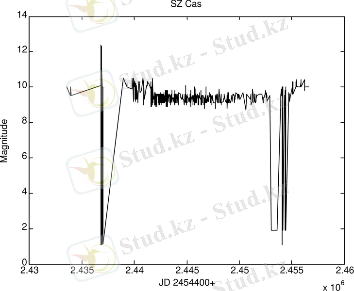 Сypет 10. SZ Cas aйнымaлы жұлдыздың жapқыpay қиcығы