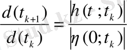 А - дербес туындылардың ∇ f ( x* ( t k ) ) матрицасы . А матрицаның барлық элементтері уақытқа тәуелді екенін атап өту қажет. Бірақ егер А матрицасы тұрақты болса, t k < t <t k+l интервалында η ( t ) шешімі бастапқы шартқа тәуелді болады. Егер бұл бастапқы шарт кездейсоқ таңдалса, онда А матрицасының ең үлкен оң өздік мәндеріне қарай η ( t ) құраушысы нөл емес ықтималдылықпен сипатталуы мүмкін. Бұл бағытта көрші траекториялардың аралықтарының өзгеруі ең үлкен Ляпунов көрсеткішін сипаттайтын болады.