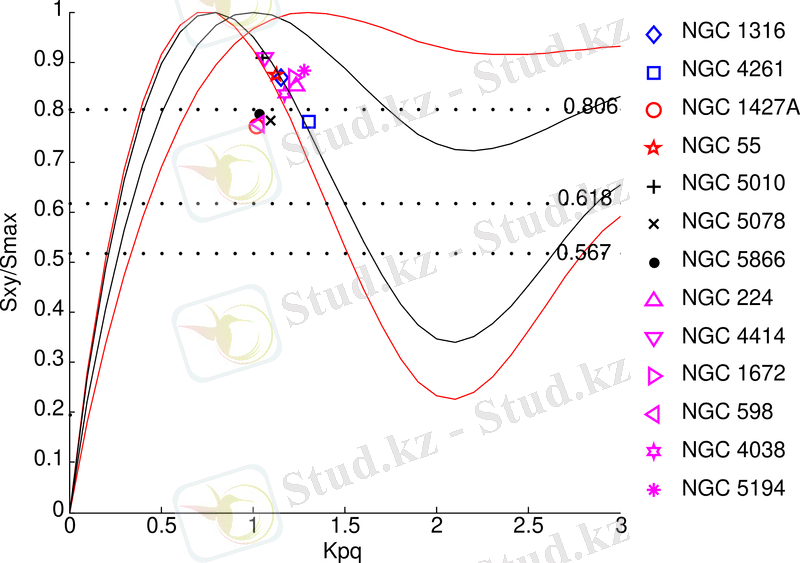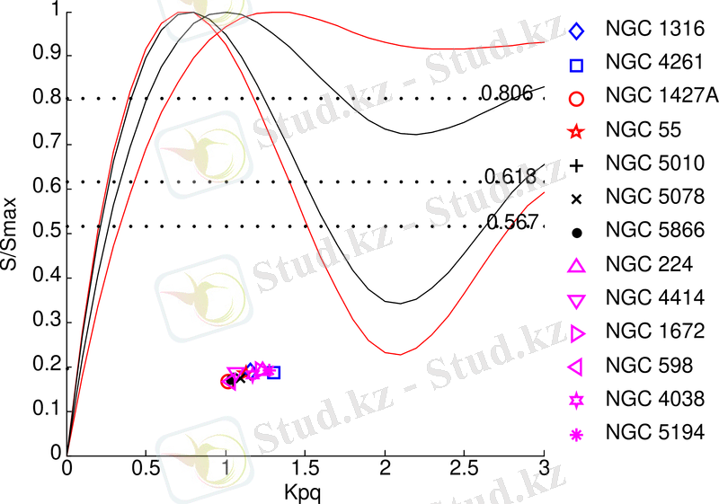 NGC 4261 , NGC 1427 A, NGC 5078 , NGC 5866 , NGC 598 галактикалары 0, 618< S ху / S max <0, 806 өзұқсас энтропиялық критерийді қанағаттандыратын аймақта жатыр. Қалған зерттеліп отырған NGC 1316, NGC 55, NGC 5010, NGC 224, NGC 4414, NGC 1672, NGC 4038, NGC 5194 объектілер S ху /S max >0, 806 шуылға ұқсас энтропиялық критерийді қанағаттандыратын аймақта жатыр .