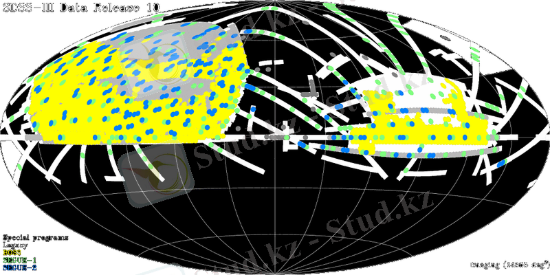 2003 жылдың ортaсындa Sloan Digital Sky Survey-III жобaсының 3-ші фaзaсы бaстaлып 2014 жылғa дейін созылды. 3. 2-ші суретте SDSS каталогі бойынша Галактикалардың аспан сферасында орналасуы.