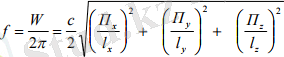 мұндағы Пх, Пу, nz - бүтін санды параметрлер; I- ғимараттың өлшемі. Кіші жиілік аймағында, параметрлердің аз мəніне не Пх, Пү, Пz, ауытқудын жеке бөліктері бір-бірінен үлкен интервалмен бөлінген, ол дискретті құрылымға ие. Жоғары жиілік аймағында спектр тығыздалады жəне өзіндік тербелістер саны артады. Егер бөлме өлшемдері тым кіші болса, өзіндік жиіліктер тығыз орналасады, нəтижесінде дыбыс көзінің спектрінде кез келген компонент бірнеше өзіндік тербелістерді қоздырады, олар қоздыру бөлшегінен айырмасы болмайды. Ғимараттардың өлшемі аз болған сайын, диапазон жиілігінде резонансты құбылыстар байқалады жəне дыбыс өрісі біркелкісіздігі артады[3] .