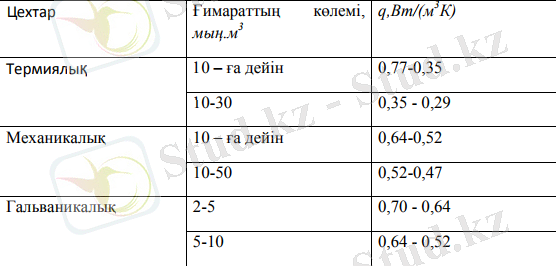 - Цех бөлмесіндегі жылу шығынын есепке алу